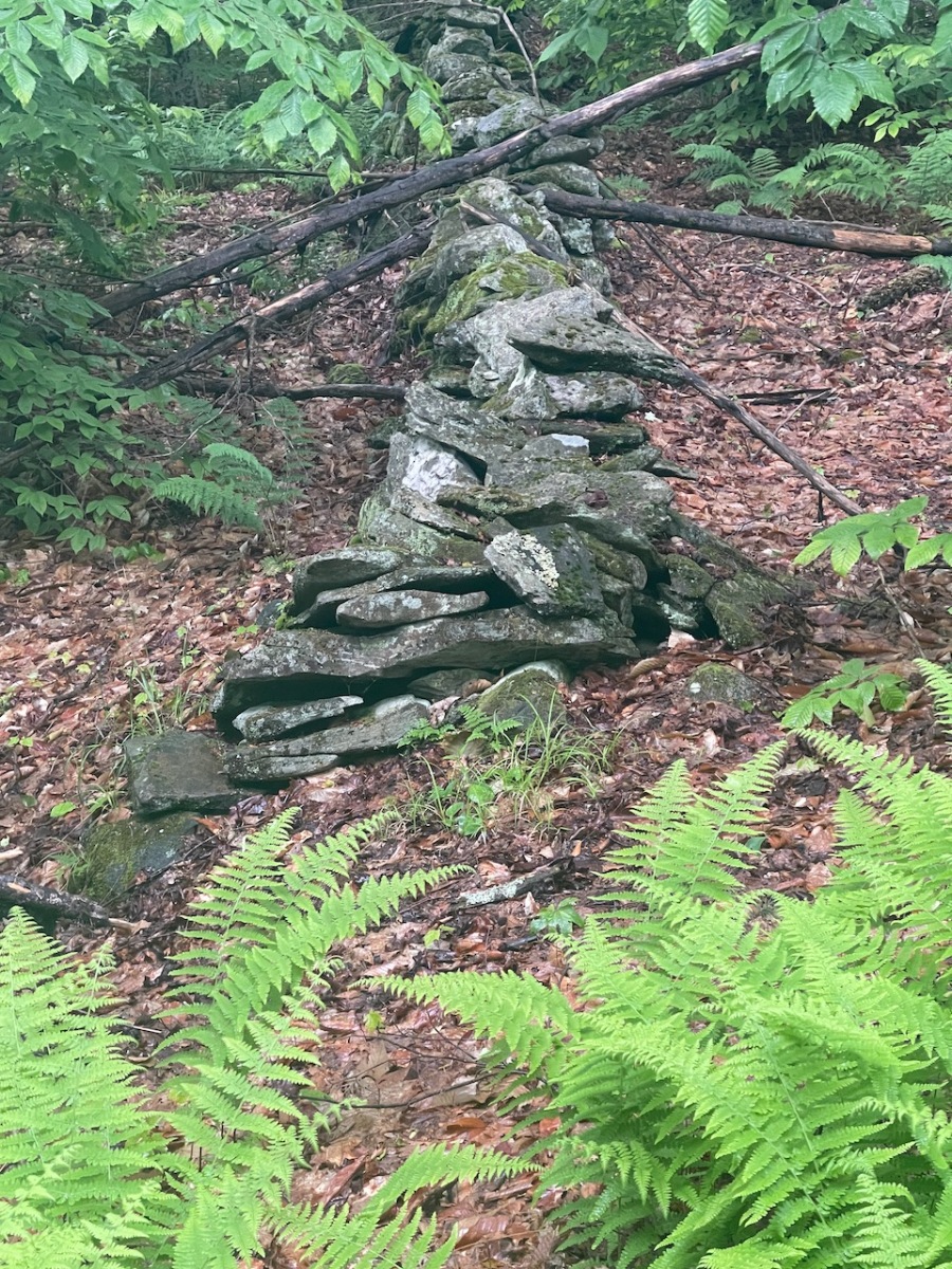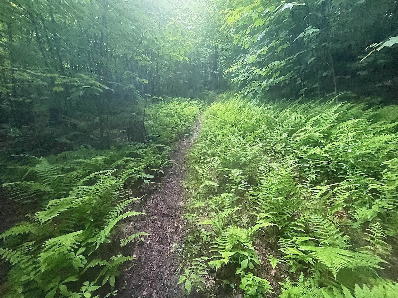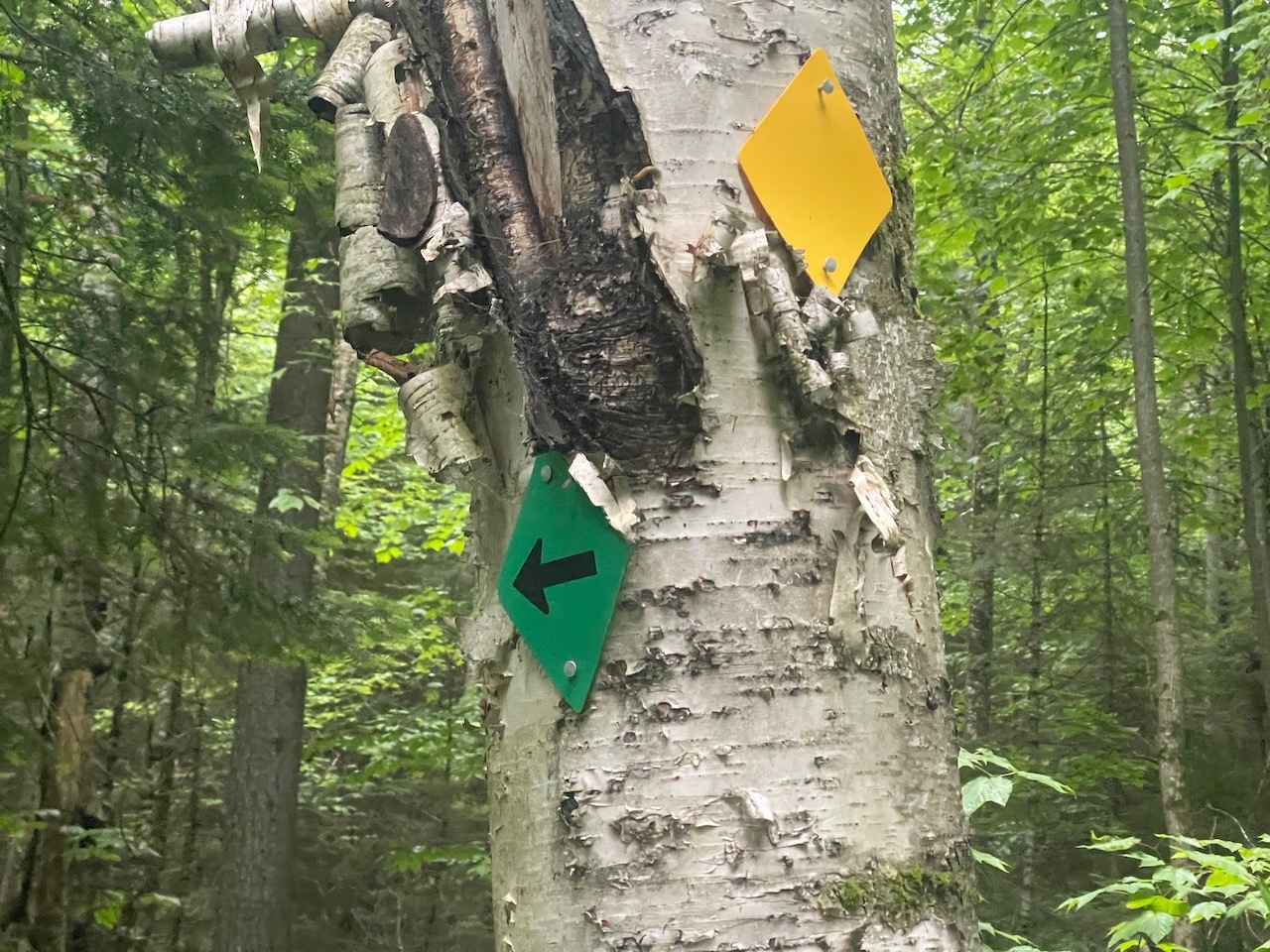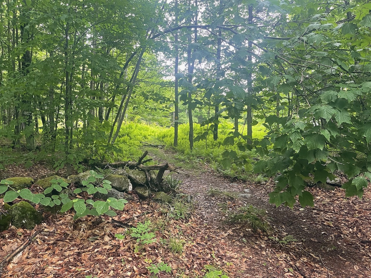 The Yellow trail is also a loop, but it intersects the Blue Trail, and I took that trail to the Red Summit Trail. The summit trail is not very long and at first seemed well traveled. But after a while it kind of fades away. There was one trail that led down that was blocked off and said no trespassing. So, I obeyed. And continued looking for the height of land.