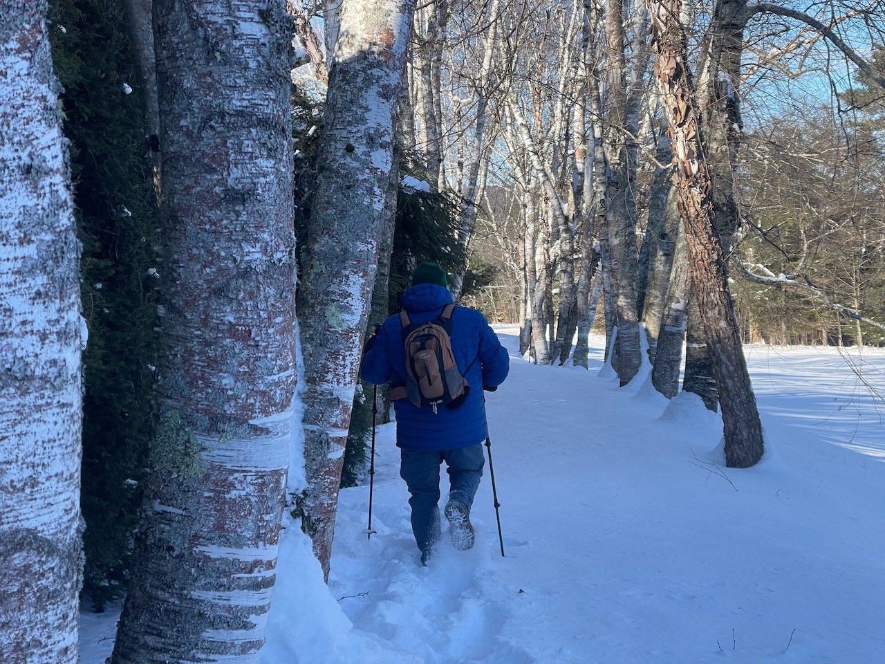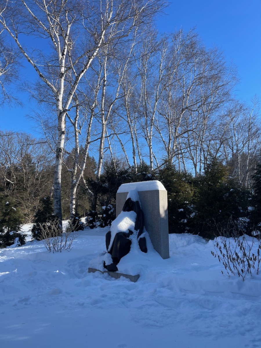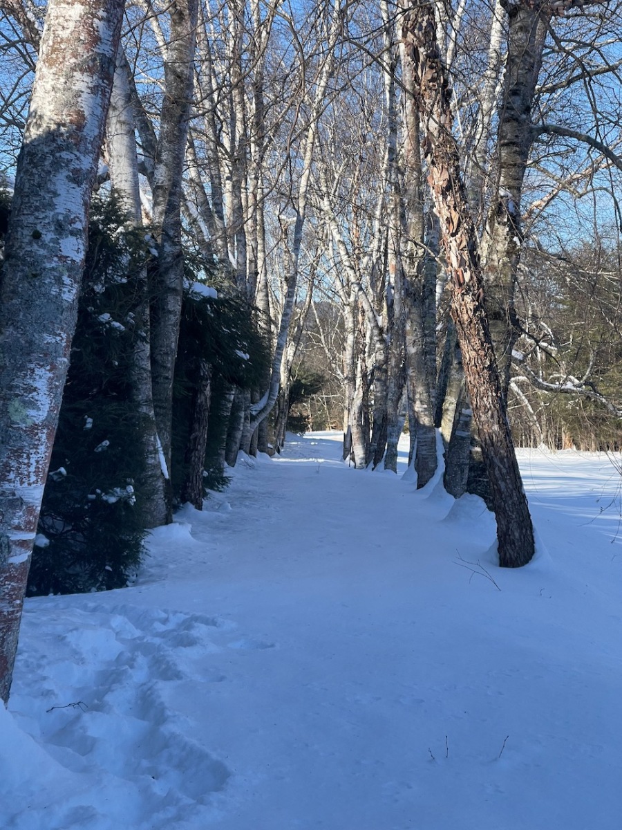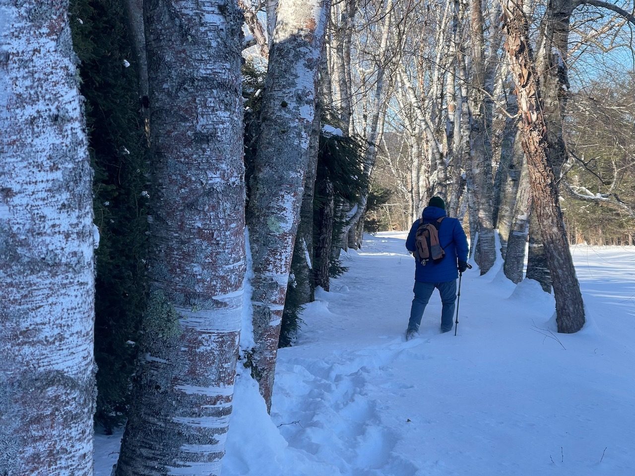 The snow was well shoved in the gardens and it was not too deep on the trails, so we left our snowshoes in the car and just brought spikes.