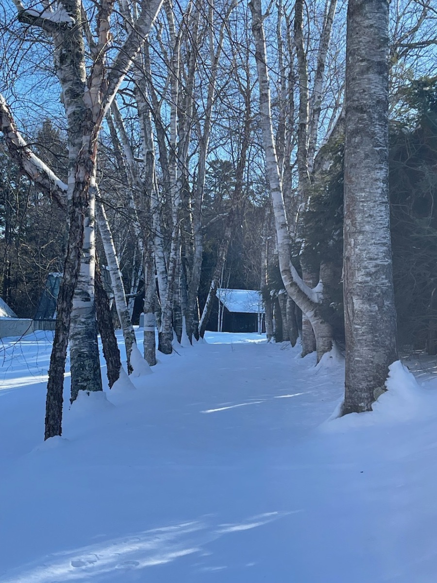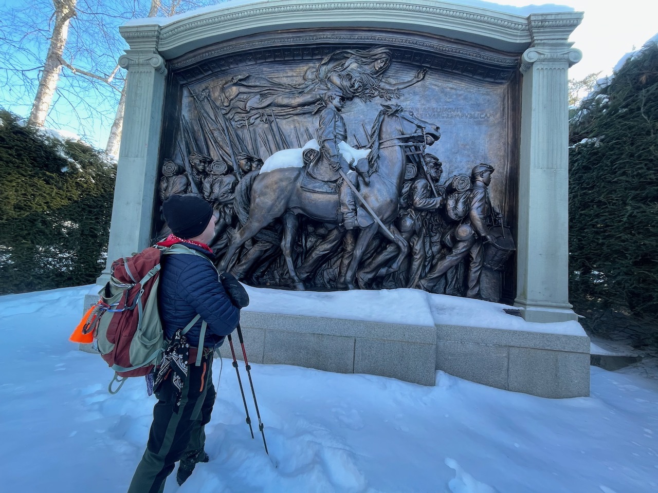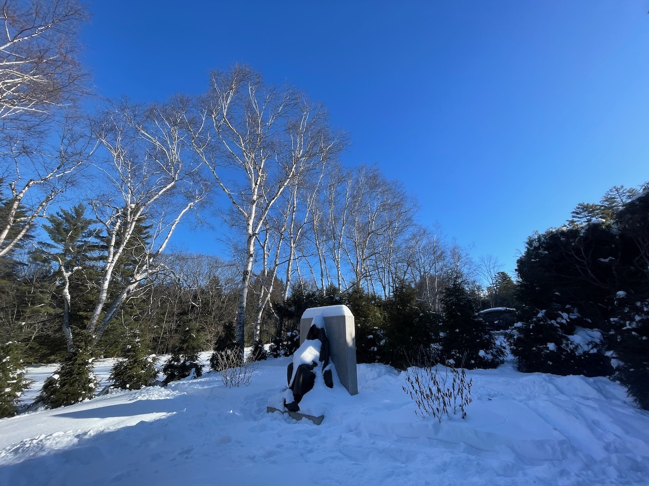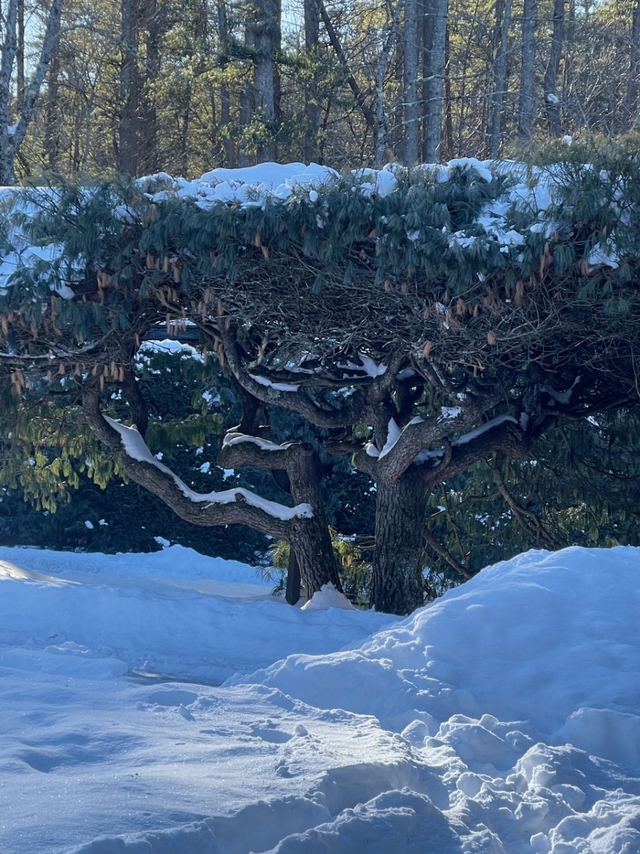 The snow was well shoved in the gardens and it was not too deep on the trails, so we left our snowshoes in the car and just brought spikes.