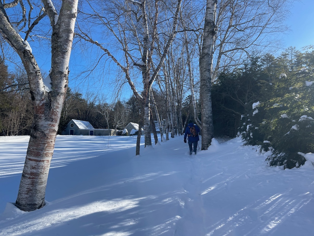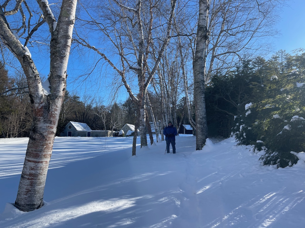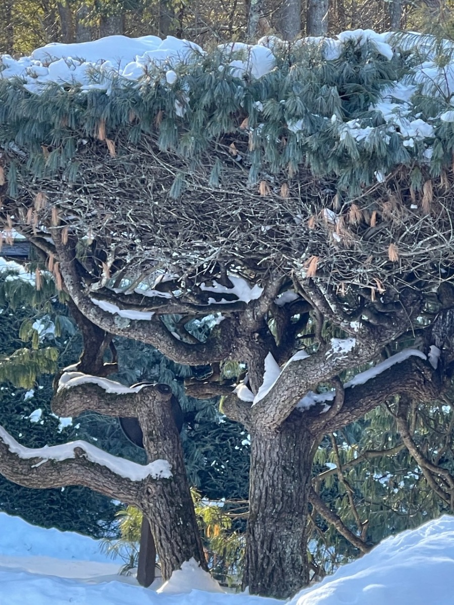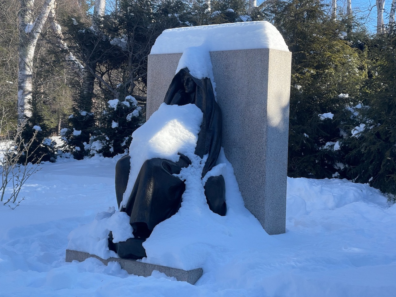 The snow was well shoved in the gardens and it was not too deep on the trails, so we left our snowshoes in the car and just brought spikes.