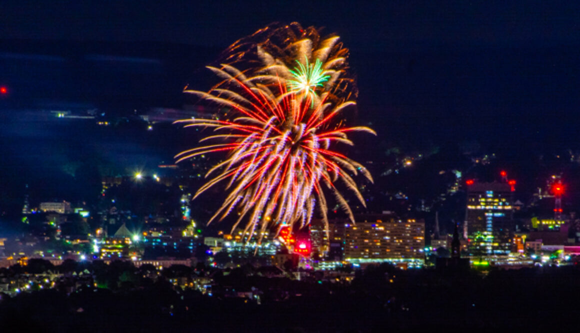 Manchester, NH Skyline during the Independance Day Fireworks