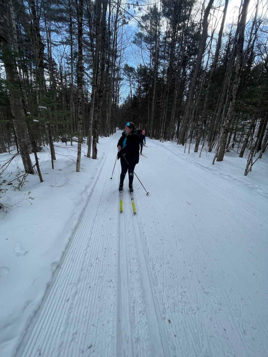 The Airport loop is big and flat. The groomed trails were about 4 feet wide with a classic track in the middle. So, these trails do not seem good for those with skate skis.