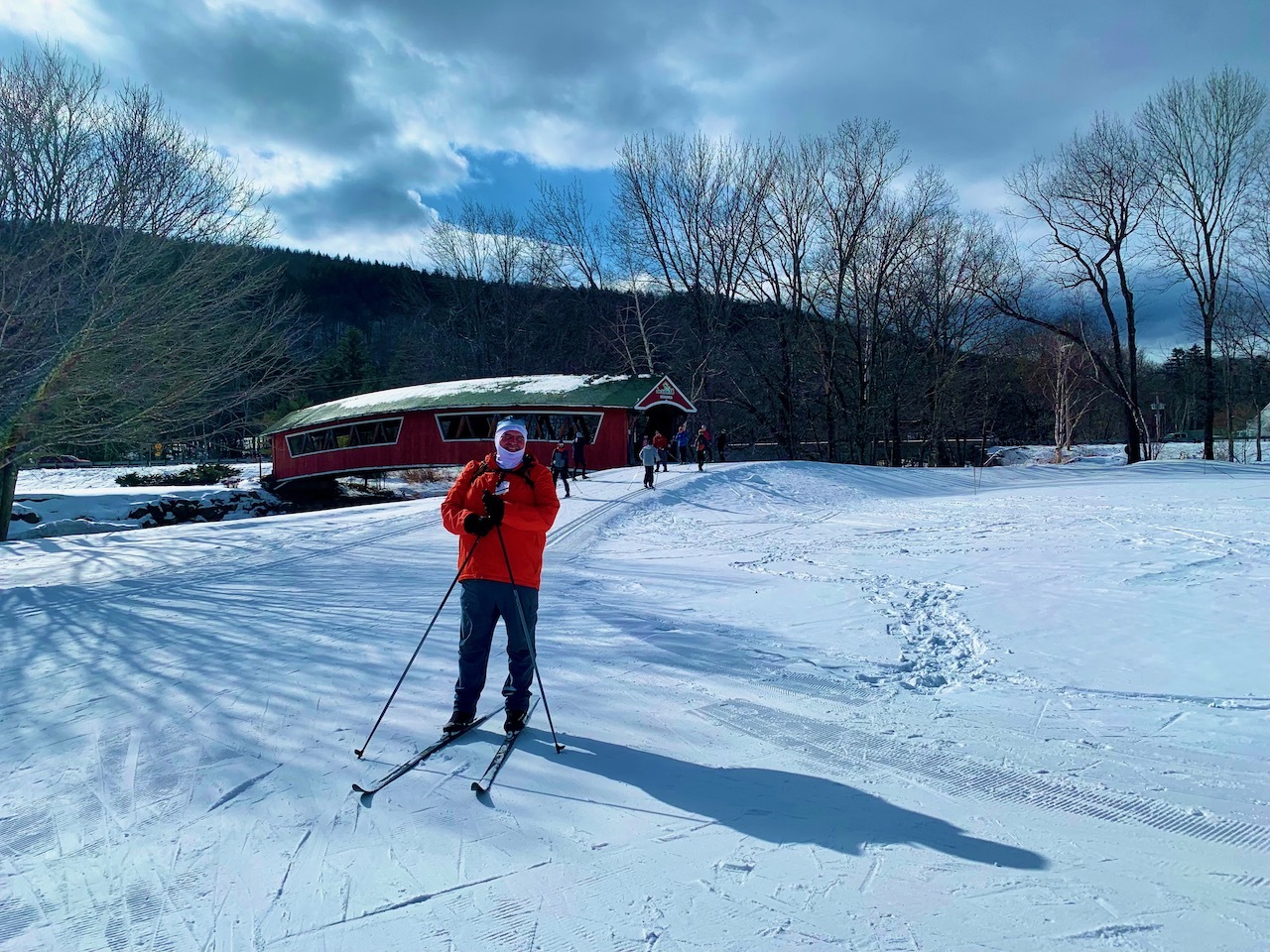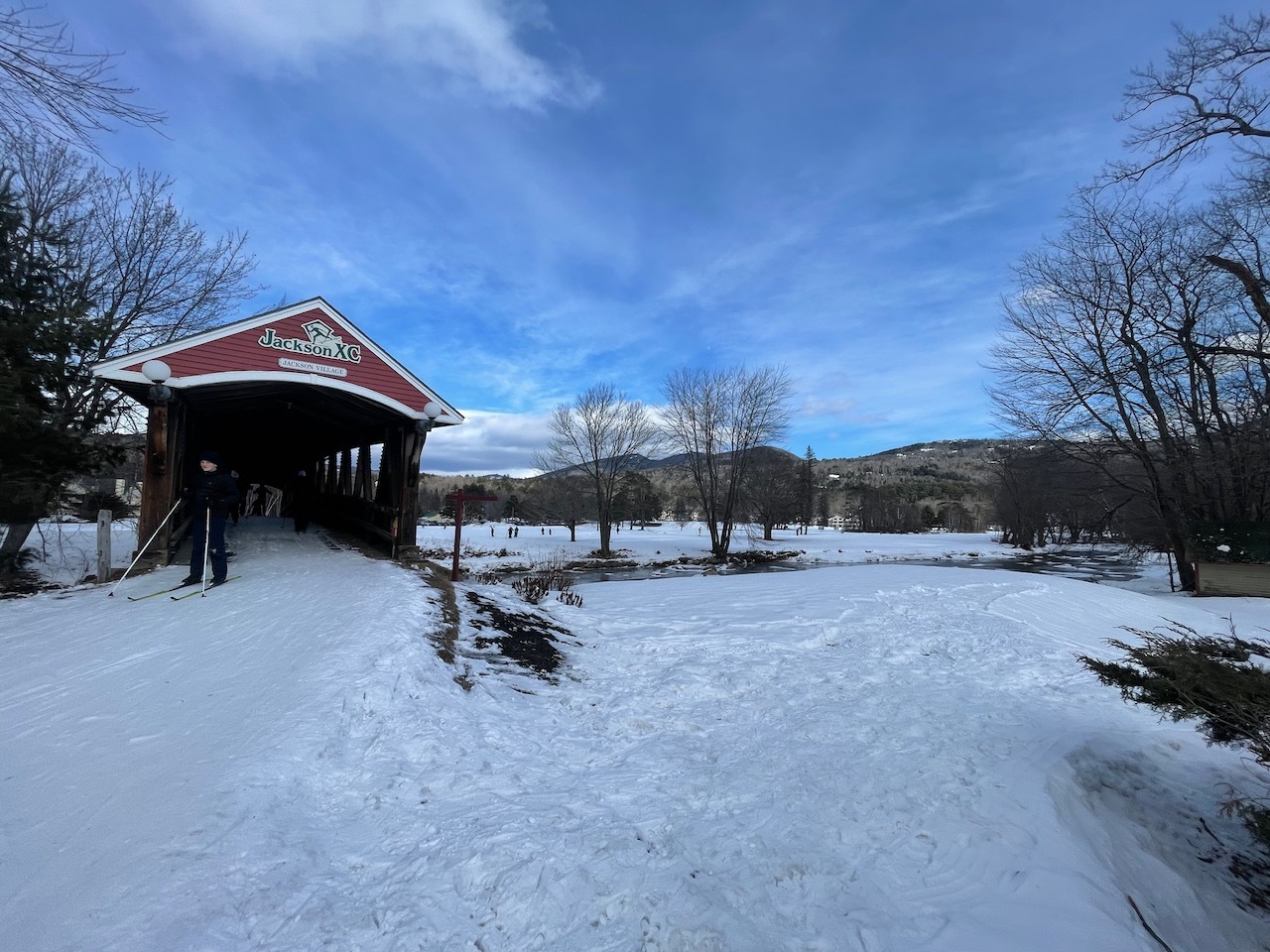 Before I knew it, I was back at the beginning of the loop. I skied on past the river and over the bridge. I looped behind the Inn over by the horse stables and then climbed up and over to the parking lot where I started.